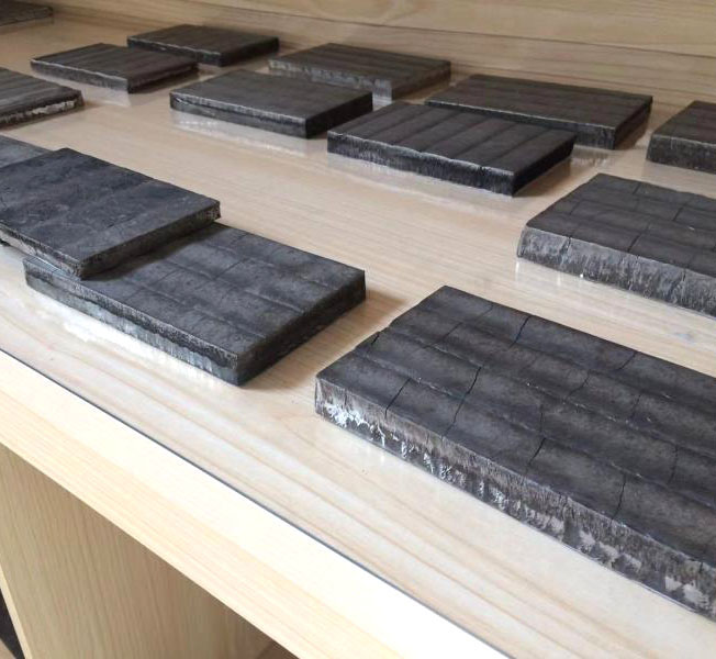 耐磨钢板合金耐磨层和基体之间是冶金结合。通过专用设备,采用自动焊接工艺,将高硬度自保护合金焊丝均匀地焊接在基材上。复合层数一层至两层以至多层,复合过程中由于合金收缩比不同,出现均匀横向裂纹,这是耐磨钢板的显著特点。